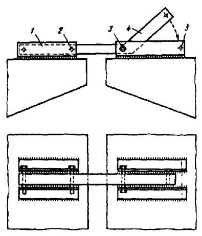 1 - пристань; 2 - перевозной паром; 3 - толкающий буксир; 4 - подход к переправе