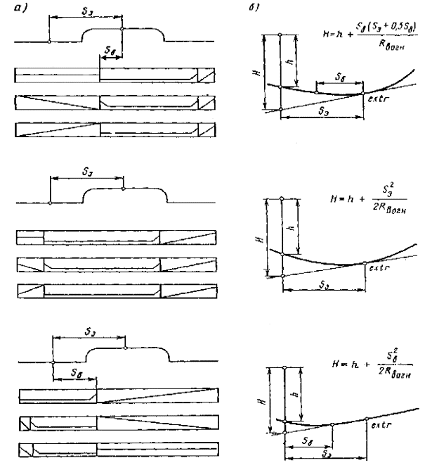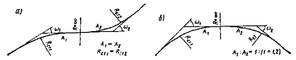 Для закруглений с переходными кривыми и для клотоидной трассы