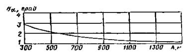Рис. 4. Зависимость расстояния до экстремальной точки на закруглении в плане с переходными кривыми от параметра клотоиды