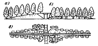 2.1. Основной принцип архитектурно-ландшафтного проектирования - создать из всех элементов дорожного ландшафта - проезжей части, земляного полотна, линейных зданий, насаждений, оформления и оборудования дороги единый архитектурный ансамбль и согласовать его с ландшафтом.