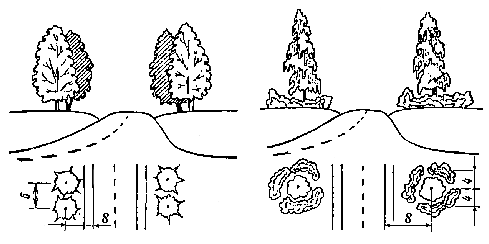 Создание снегозадерживающих полос, оформление границ республик, областей, городов, выполнение требований зрительного ориентирования на пересечениях, кривых в плане, участках с ограниченной видимостью