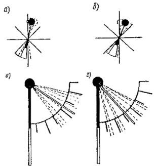 Запись измерений направления ветра производится русскими буквами в соответствующую графу журнала (форма 1). При записи скорости ветра отмечаются номер штифта или номера штифтов и соответствующая скорость ветра. Если, например, доска колебалась между штифтами 3 и 5, то записывается номер промежуточного штифта, т. е. 4, и скорость ветра 8 м/с (в соответствии с табл. 1); если, например, доска колебалась между штифтами 3 и 4, то записывается 3-4, и скорость ветра 7 м/с.
