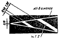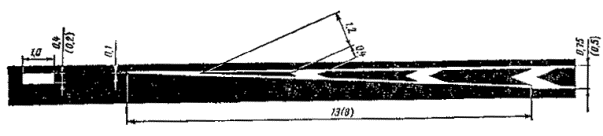В. ВОЗМОЖНАЯ ФОРМА КОНЦА СУЖАЮЩЕЙСЯ ЧАСТИ ПРИ РАЗЛИЧНОЙ ШИРИНЕ РАЗДЕЛИТЕЛЬНОЙ ПОЛОСЫ