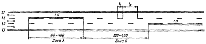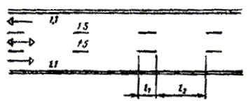 Б. ПРИ РАСПОЛОЖЕНИИ ПРЕПЯТСТВИЙ МЕЖДУ ПОЛОСАМИ ОДНОГО НАПРАВЛЕНИЯ ДВИЖЕНИЯ
