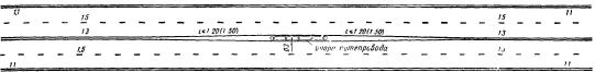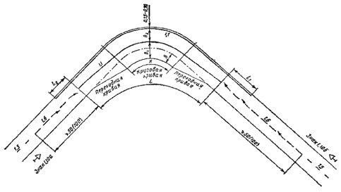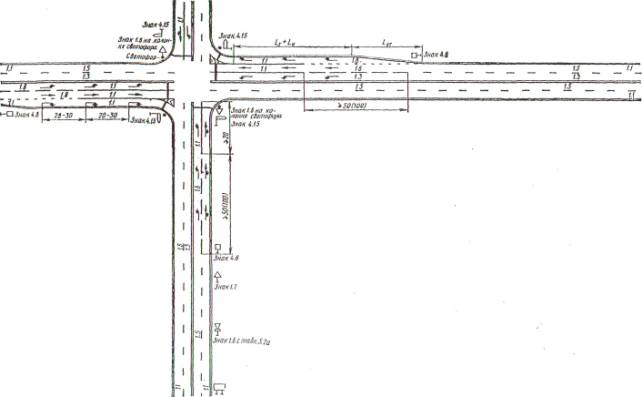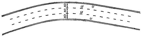 На существующих дорогах ширина полосы не должна быть менее 3 м. В исключительных случаях ширина полосы, предназначенной для движения легковых автомобилей, может быть уменьшена до 2,75 м. Обозначение полос движения осуществляется следующим образом: