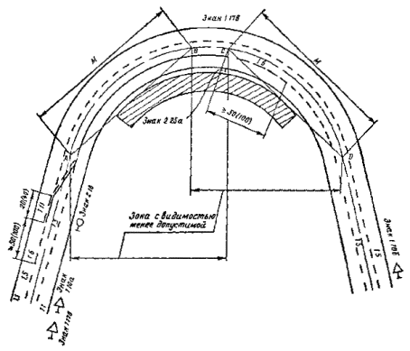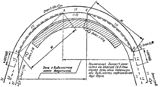 Примечание. Под расстоянием видимости подразумевается расстояние, на котором предмет, установленный на высоте 1,2 м над уровнем проезжей части, виден наблюдателю, глаз которого также находится на высоте 1,2 м.