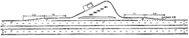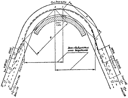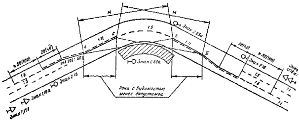 А ПРИ РАСПОЛОЖЕНИИ ПРЕПЯТСТВИЙ МЕЖДУ ПОЛОСАМИ СО ВСТРЕЧНЫМ НАПРАВЛЕНИЕМ ДВИЖЕНИЯ