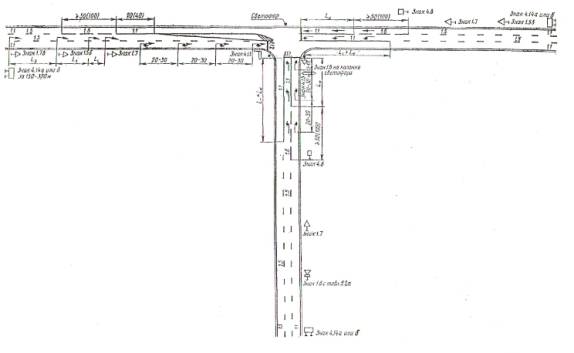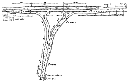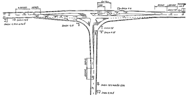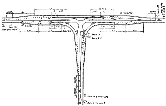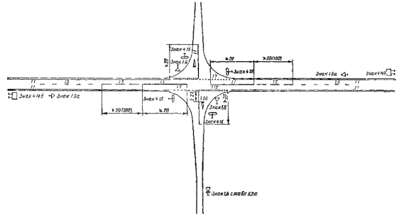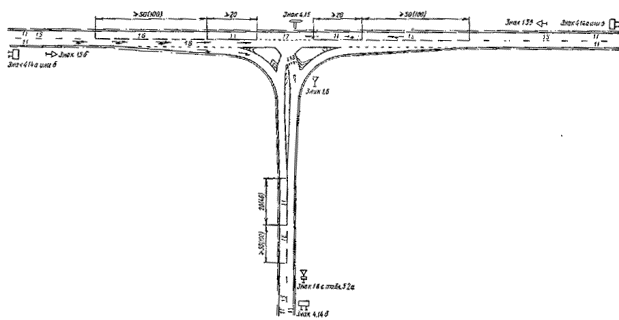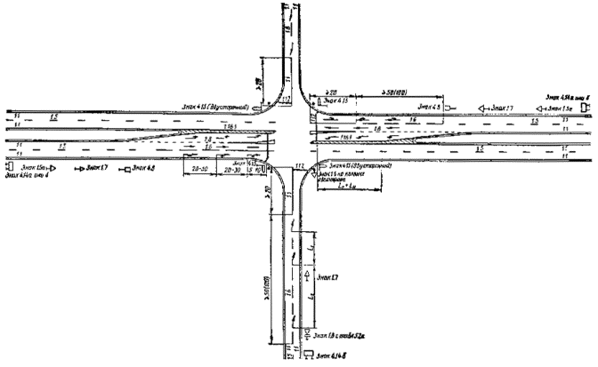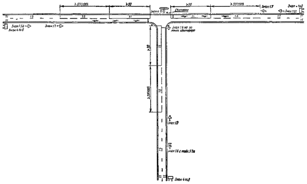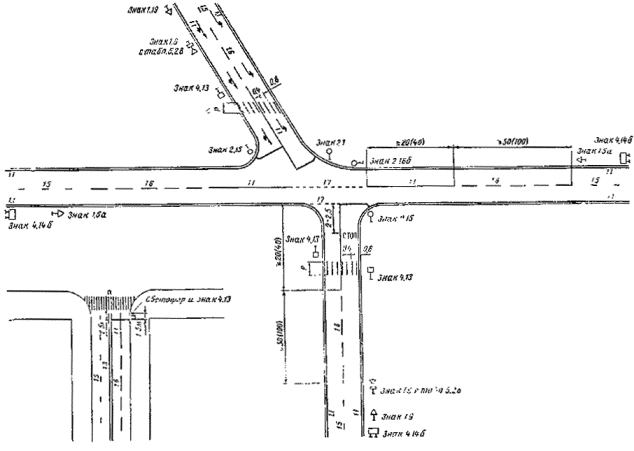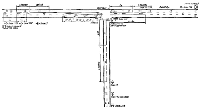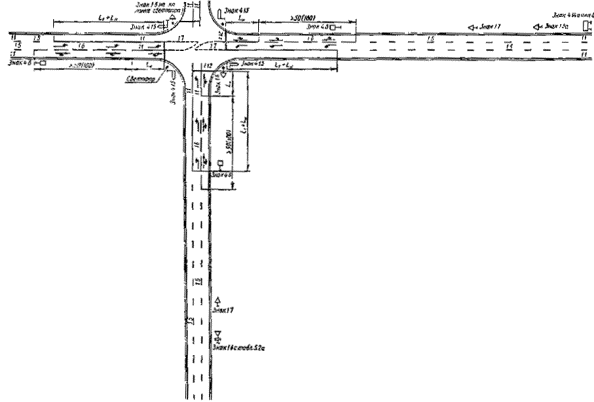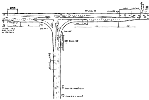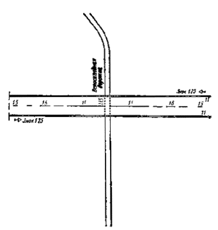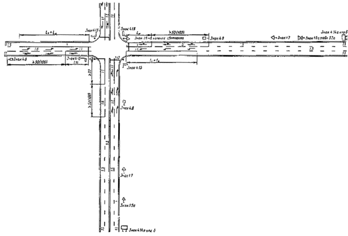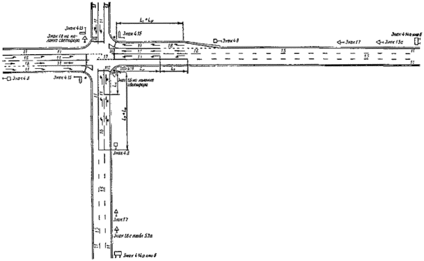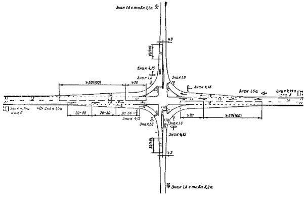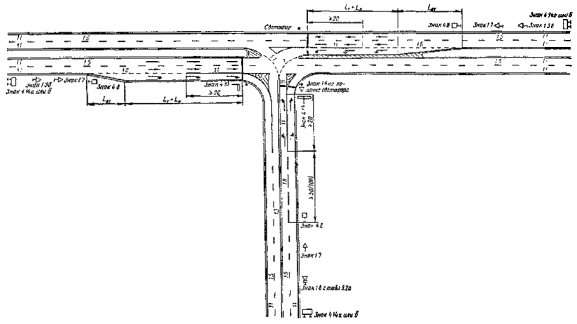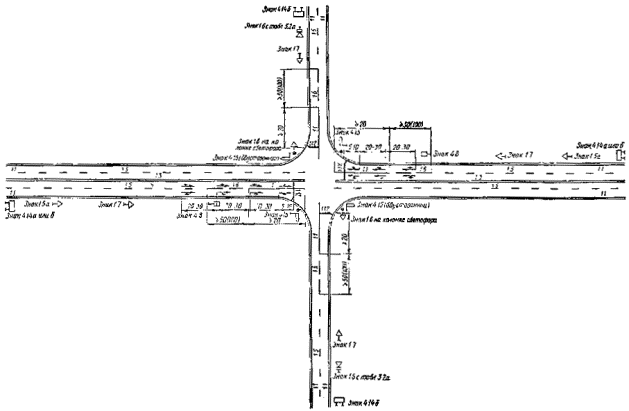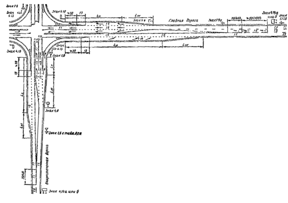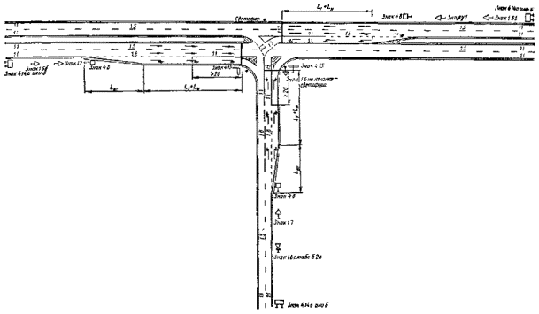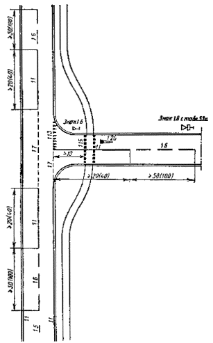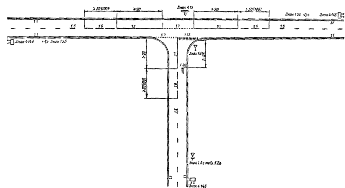 Б. ПРИ ПЕРЕСЕЧЕНИИ И ПРИМЫКАНИИ ДОРОГ ПОД УГЛОМ 90°