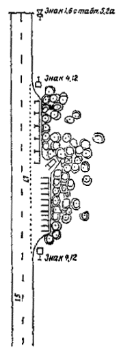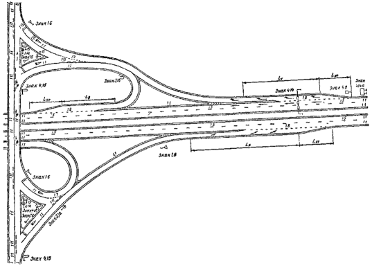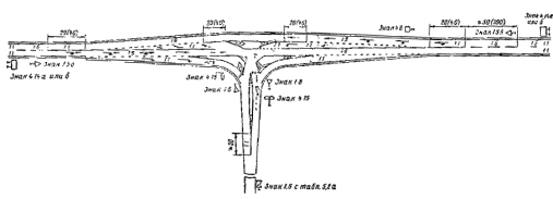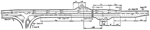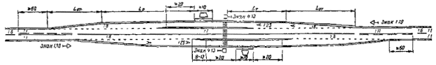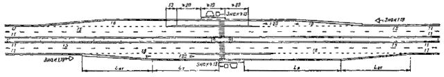 XX. Разметка автомобильных дорог в местах сужения проезжей части и изменения числа полос движения