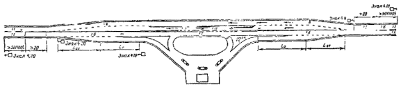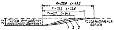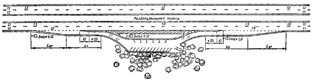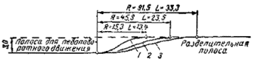 2. Построение окончаний разделительной полосы в местах ее разрыва