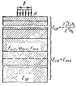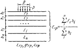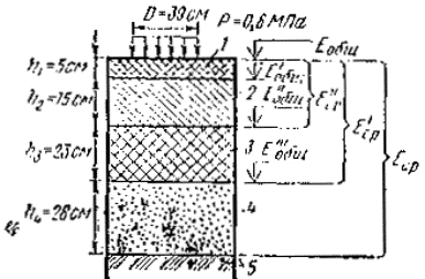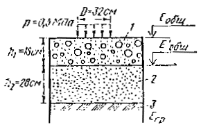 Расчетная схема конструкции - слоистое упругое полупространство, равномерно нагруженное по площади круга.