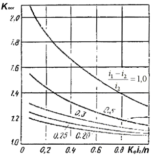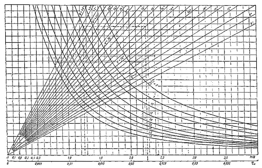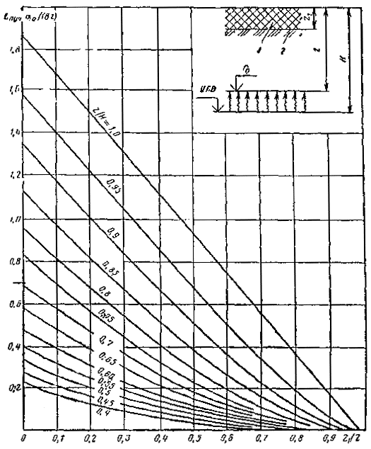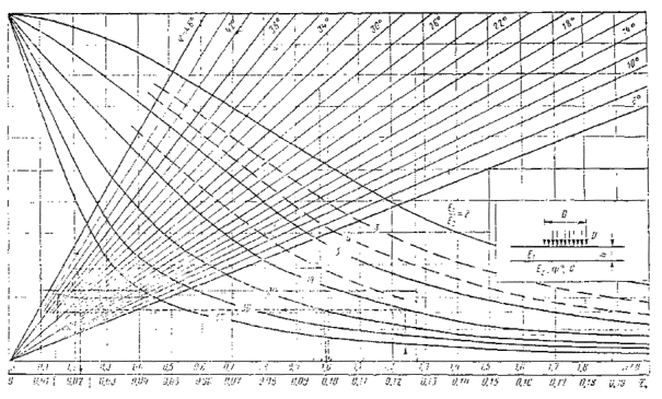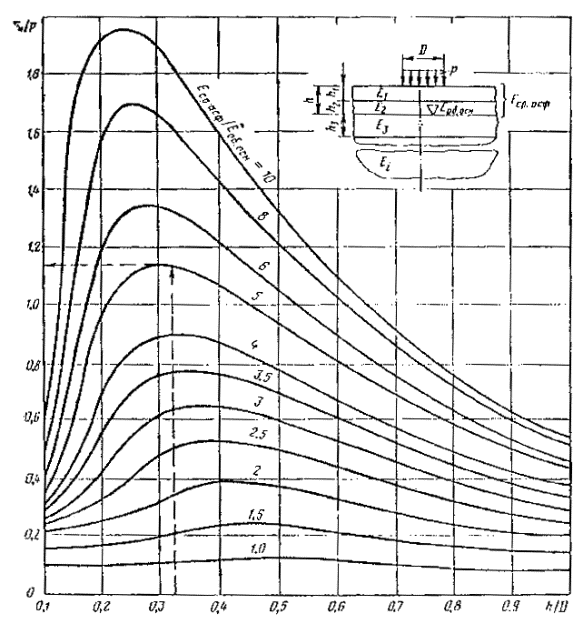 Рис. 3.6. Деталь номограммы для определения активного напряжения сдвига от временной нагрузки в нижнем слое двухслойной системы (при h/D=0¸4)