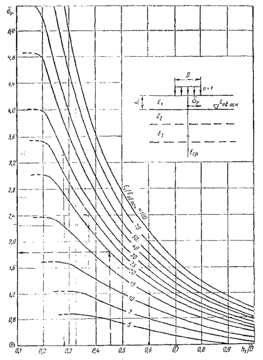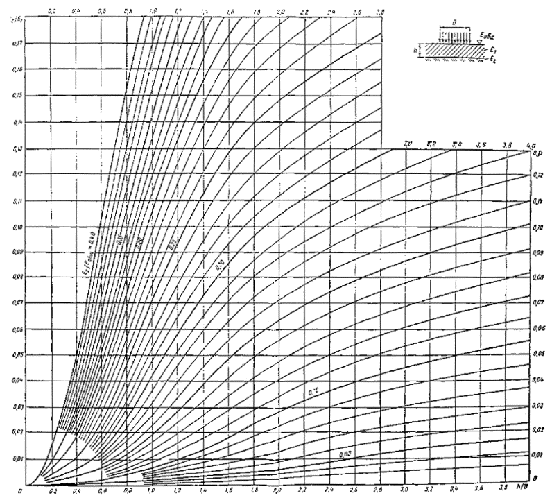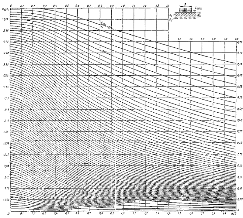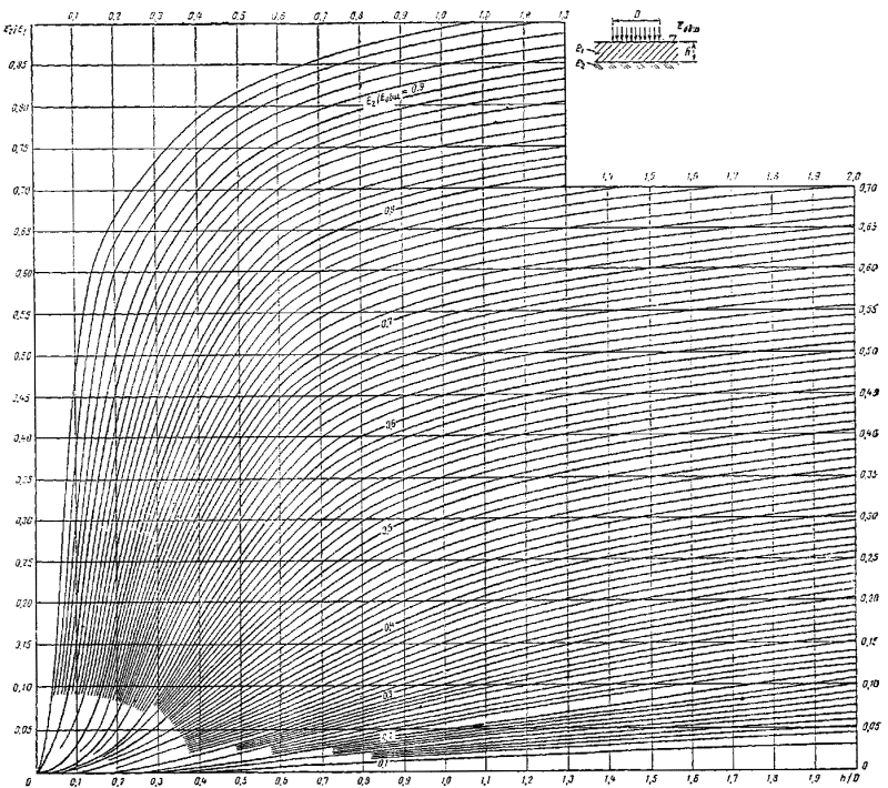Pиc. 29 Номограмма для модуля упругости Е верхнего слоя двухслойном системы