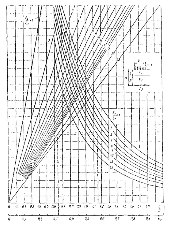 Рис. 3.3. Номограмма для определения общего модуля упругости двухслойной системы Еобщ