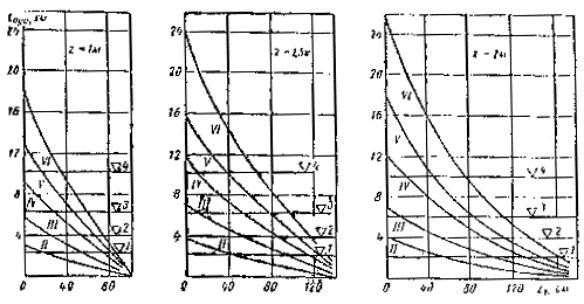 Примечания: 1. Асфальтобетонные покрытия не следует предусматривать на дорогах IV категории, если элементы плана и продольного профиля не соответствуют скорости движения автомобилей 80 км/ч в равнинной, 60 км/ч - в пересеченной и 10 км/ч - в горной местности.