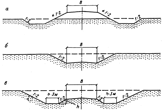 в) создавать, условия, облегчающие перенос песка через дорогу в виде ветропесчаного потока (придание обтекаемого поперечного профиля насыпям и рационального очертания выемкам, планировка придорожных полос);