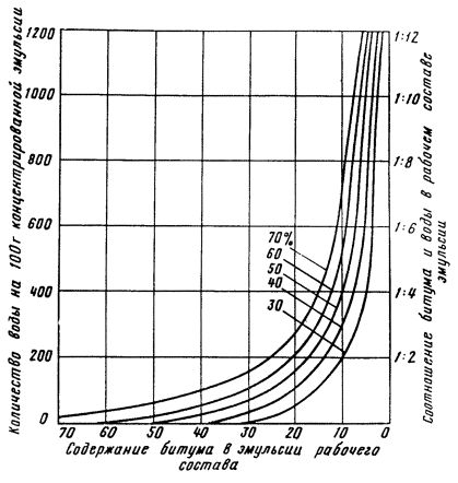 Номограмма для ускоренного подбора рабочего состава эмульсии различной концентрации (цифры на кривых).