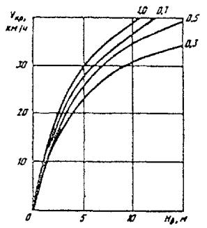 Примечания: 1. Для расчета элементов плана и продольного профиля приведены максимальные возможные скорости движения одиночных автомобилей исходя из безопасности движения при коэффициенте сцепления колес с покрытием автозимника φ > 0,2.