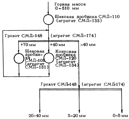 преимущественное применение передвижного горнодобывающего и дробильно-сортировочного оборудования при максимальном сокращении технологического транспорта;