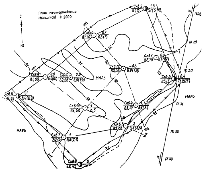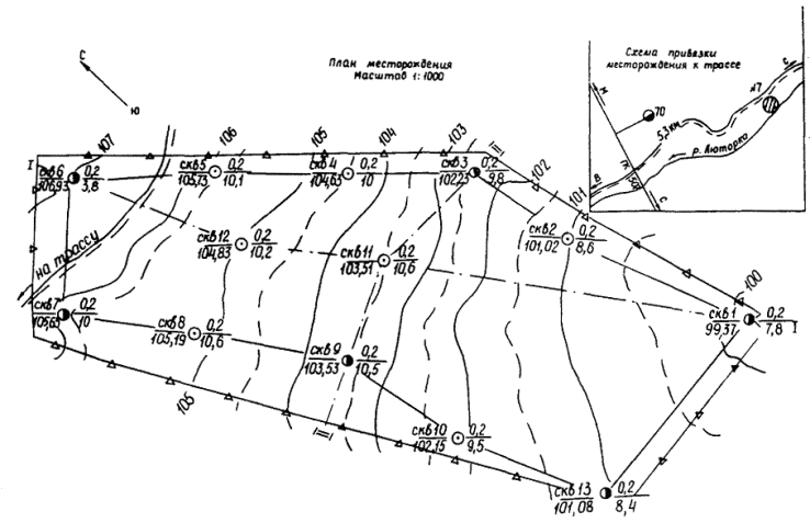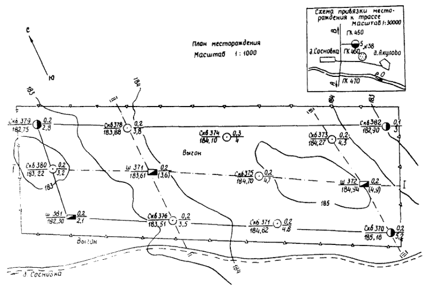 выявлены на всем протяжении трассы автомобильной дороги месторождения необходимых материалов;