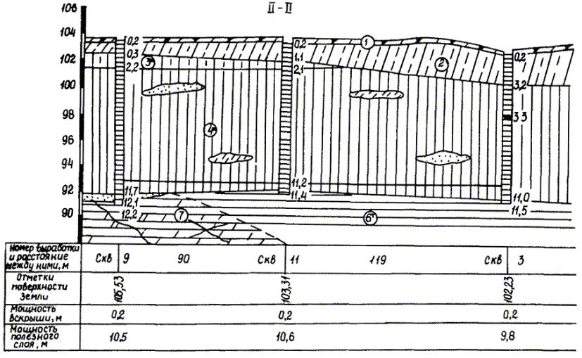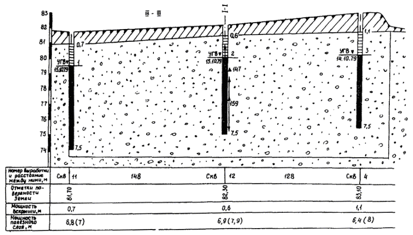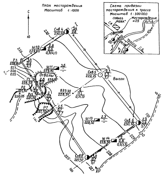 2.19. По результатам проведенных работ составляют отчет, в котором кратко характеризуют геологическое строение района изысканий, указывают зоны распространения геологических комплексов, перспективных с точки зрения наличия дорожно-строительных материалов, приводят сведения о качестве последних, дают общую оценку обеспеченности района изысканий дорожно-строительными материалами. Все эти данные могут быть нанесены на крупномасштабные инженерно-геологические карты в условных обозначениях.