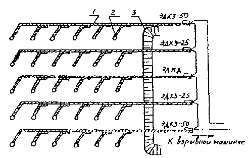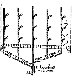 1.4. Взрывание скважинных, камерных и котловых зарядов производится по проектам, а при систематическом взрывании - по типовым проектам, корректируемым на каждый массовый взрыв по фактическим данным расположения зарядных выработок. Взрывание шпуровых (в том числе и котловых шпуровых зарядов) рукавов и наружных зарядов - по паспортам.