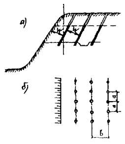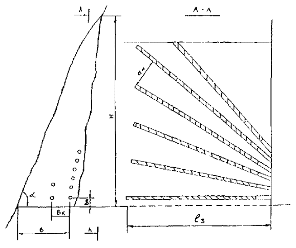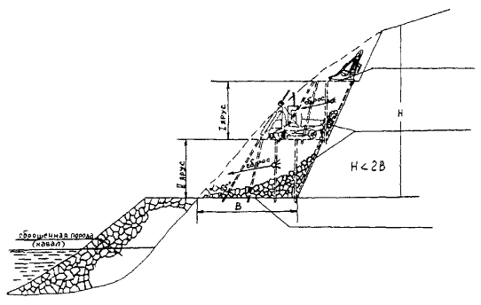 для образования полок на крутых склонах скальных массивов, находящихся в неустойчивом равновесии.