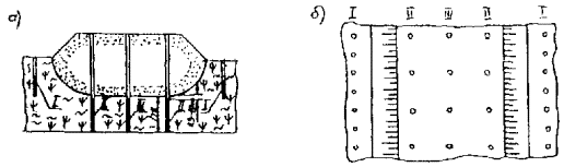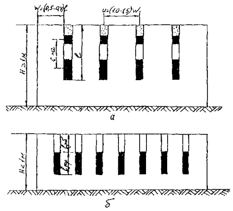 а) шарошечный способ бурения - в некрепких (VI группы, по СНиП IV-2-82, сб. 3), среднекрепких (VII-VIII групп) и в крепких (IX группы) малоабразивных грунтах, а также в грунтах с нескальными прослойками и в нескальных мерзлых и моренных грунтах, содержащих твердые включения;