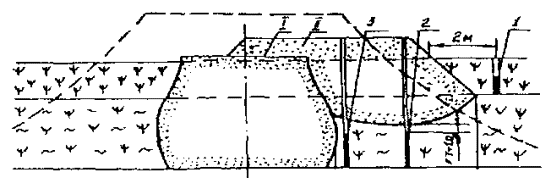 1.3. Разработка взрывным способом выемок, расположенных на расстоянии до 50 м от искусственных сооружений (если другие расстояния не определены проектом), должна быть закончена до начала возведения этих сооружений.