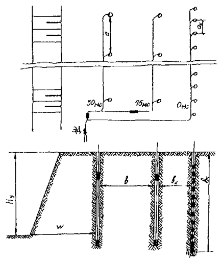 1.10. При подчистных планировочных работах, устройстве канав, кюветов, нарезке технологических полок до ширины основания 1-2 м, небольших котлованов с глубиной взрываемого слоя до 0,5 м, рекомендуется шпуровой метод взрывных работ.