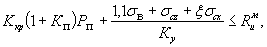 Kк - суммарный коэффициент концентрации напряжений на контуре выработки, определяемый по формулам: