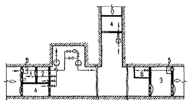 3. Число замерных пунктов следует устанавливать из условия получения полной схемы распределения воздуха в основных выработках рудника (шахты) и определения путей движения исходящих из выемочных участков вентиляционных струй.