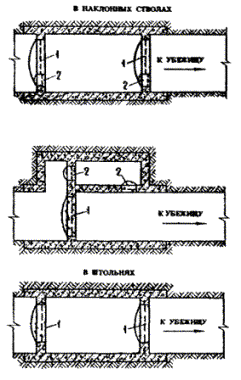 1.4. Защитные сооружения следует размещать в протяженных выработках (квершлагах, штреках, штольнях, наклонных стволах, выработках околоствольных дворов).