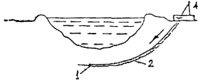 2. На несудоходных реках траншеи в руслах рек разрабатываются легкими и средними земснарядами с глубиной осадки до 1,5 м. В зимнее время легкие земснаряды типа ПМТ-100 могут работать со льда.