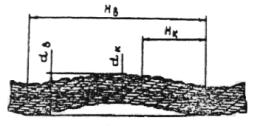 6. Волнистость каната характеризуется шагом и направлением ее спирали (рис. 8). При совпадении направлений спирали волнистости и свивки каната и равенстве шагов спирали НВ и свивки каната НК канат бракуется при dК³1,08dК, где dВ - диаметр спирали волнистости, dК - номинальный диаметр каната.