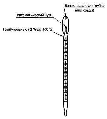 7.3.1.1 Калиброванные бюретки должны быть оснащены краном со сливным наконечником, обеспечивающим точное регулирование отмеряемого топлива. Размер и конструкция наконечника должны обеспечивать отсекаемый расход топлива с точностью не более 0,5 см3.