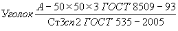 Уголок горячекатаный равнополочный высокой точности прокатки (А), размером 50×50×3 мм по ГОСТ 8509-93, из стали марки Ст3сп, категории 2:
