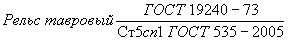 Рельс тавровый по ГОСТ 19240-73, из стали марки Ст5сп, категории 1: