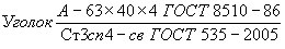 Прокат горячекатаный угловой неравнополочный высокой точности прокатки (А), размером 63 × 40 × 4мм по ГОСТ 8510-86, из стали марки Ст3сп, категории 4, с гарантией свариваемости (св):