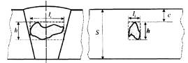 3.5 глубина залегания дефекта с, мм: Минимальное расстояние от границы внутреннего дефекта до ближайшей поверхности сварного соединения (трубы).
