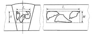 3.6 групповой дефект: Несколько близко расположенных единичных дефектов, принимаемых после схематизации как один новый единичный дефект большего размера.