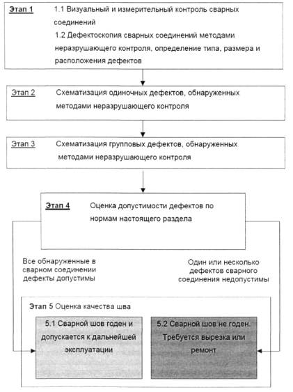 3.20 недопустимый дефект: Дефект, или совокупность дефектов, вид, количество и геометрические параметры которого (ых) превышают принятые нормы.