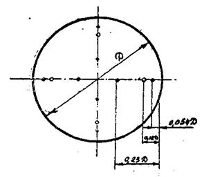 Рис. 3. Координаты точек измерения давлений и скоростей в воздуховодах цилиндрического сечения.