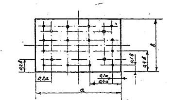 а) при равномерном распределении по площади цеха источников тепловыделений точки измерения располагаются равномерно по всему цеху б соответствии с табл.2.