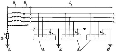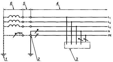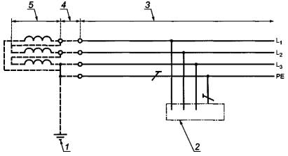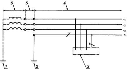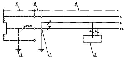 Цепь состоит из проводников, находящихся под напряжением, защитных проводников (при их наличии), защитного устройства и соответствующей коммутационной аппаратуры, аппаратуры управления и вспомогательных устройств. Защитный проводник может быть общим для нескольких цепей |