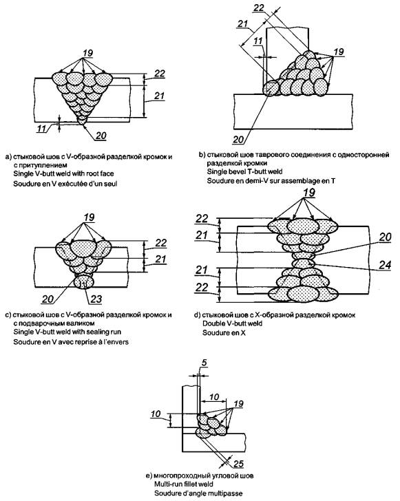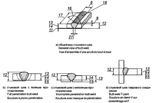 1 Приведенные в настоящем стандарте рисунки являются лишь эскизами, служащими для пояснения характерных особенностей различных типов соединения. Необязательно изображать эти рисунки в таком же виде на проектных или технических чертежах (например, согласно ИСО 2553).