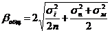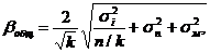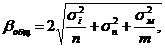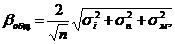 4.2.1 Общая погрешность (βобщ = 2σобщ) оценки представительного показателя качества поставки складывается из погрешности отбора проб (βот = 2σот), погрешности подготовки проб (βп = 2σп) и погрешности метода измерения (βм = 2σм).