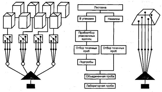3.14 отбор проб двустадийный (two-stage sampling): Метод произвольного отбора проб в две стадии. На первой стадии проводят отбор первичных единиц (например, упаковочных единиц или частей поставки). На второй стадии от каждой выбранной первичной единицы отбора проб произвольно отбирают несколько точечных проб (вторичных единиц отбора проб).