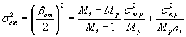 Здесь σобщ - стандартное (среднеквадратическое) отклонение, характеризующее общую погрешность (прецизионность) оценки представительного показателя качества поставки, %; σот - стандартное (среднеквадратическое) отклонение, характеризующее погрешность (прецизионность) отбора проб от поставки, %; σп - стандартное (среднеквадратическое) отклонение, характеризующее погрешность (прецизионность) подготовки проб, %; σм - стандартное (среднеквадратическое) отклонение, характеризующее погрешность (прецизионность) метода анализа проб, %.