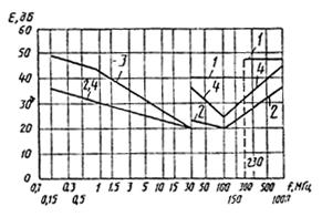 Кроме того, при измерениях напряженности поля радиопомех, создаваемых ТС, устанавливаемых на расстоянии менее 10 м от служебных радиоприемных устройств (норма радиопомех по графикам 2, 3 черт. 2):